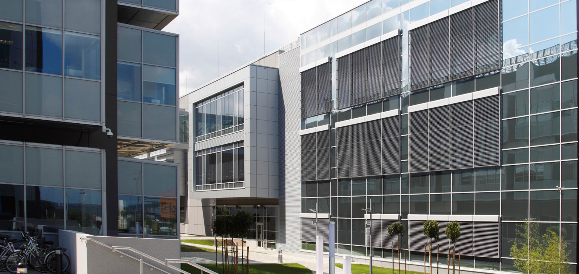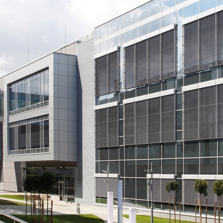 Feste oder bewegliche Lamellen "Lichtbrecher", die sowohl als Sonnenschutz als auch dekoratives und architektonisches Element von Gebäuden dienen.
